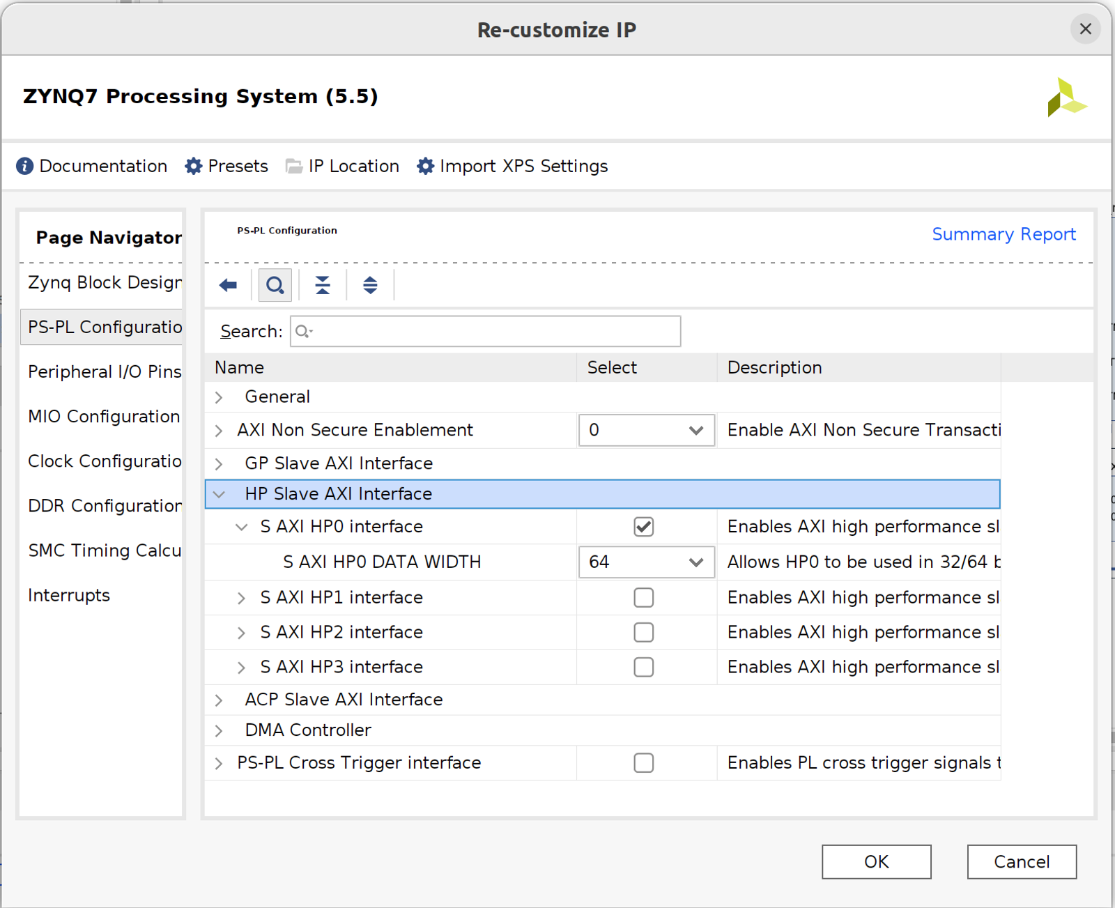 - Add ZYNQ7 Processing System Core : In the IP catalog, search for and add the ZYNQ7 Processing System core to your design. Configure it to enable the necessary interfaces. The required configuration is presented in Figure 1 below.