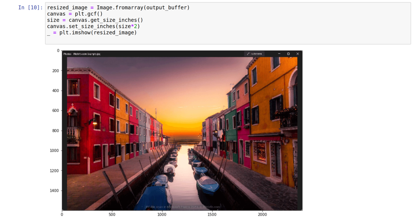 - Allocate Buffers : Input and output buffers are allocated using the allocate function, sized according to the old and new image dimensions respectively. The input buffer is filled with pixel data from the original image.