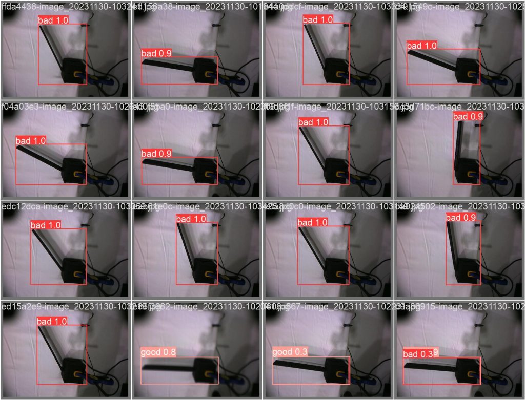 As per the above image, we can see results from our validation batch, our final dataset had around 300 images of which more than 70% were bad classes. We also had to annotate some images before we had a good enough model to automatically do that for us. The easy part was done, but now we had to control the arm itself. Fortunately enough, everything could be controlled using ROS so at least a part of the learning curve was familiar. The position of the arm in relation to the object was predefined which simplified our use case a lot, but there was still a problem of moving the satellite wing just enough to not overdo it and possibly break the satellite. The first step as mentioned before was to move the arm in the position where it can take and process the picture of the satellite. Afterwards, there was a pipeline that estimated the solar panel angle (in relation to the satellite body) and moved the arm to the predefined position in relation to the estimated angle. The arm moved just enough to fix the solar panel and then retracted a bit so as not to damage the satellite.